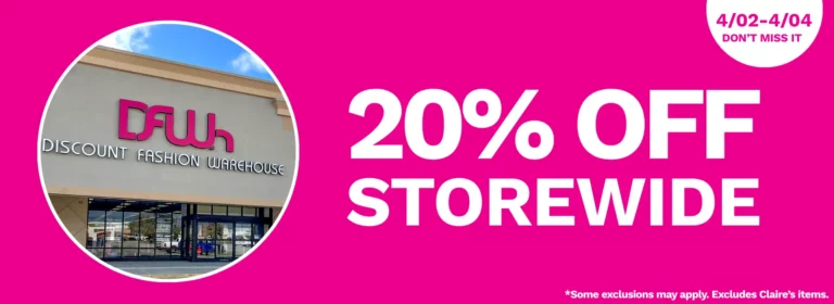 At Discount Fashion Warehouse, shopping is all about getting more of what you love for less. With fresh deliveries and incredible deals throughout the store, you can treat yourself (and the family) without stretching your budget. Every trip is a chance to save big, discover new favorites, and enjoy top-quality fashion at a fraction of the retail cost.