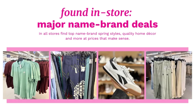 We receive new shipments regularly, so shoppers can always find fresh selections of discount name brand clothes, accessories, and home goods.