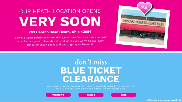 Whether you're hunting for workwear, weekend outfits, kids' clothing, accessories, or unique fashion finds, DFWh makes it easy to stretch your budget and still look great. With new inventory arriving often and 17 locations across Ohio, the savings are always fresh, and the deals are always worth the trip.